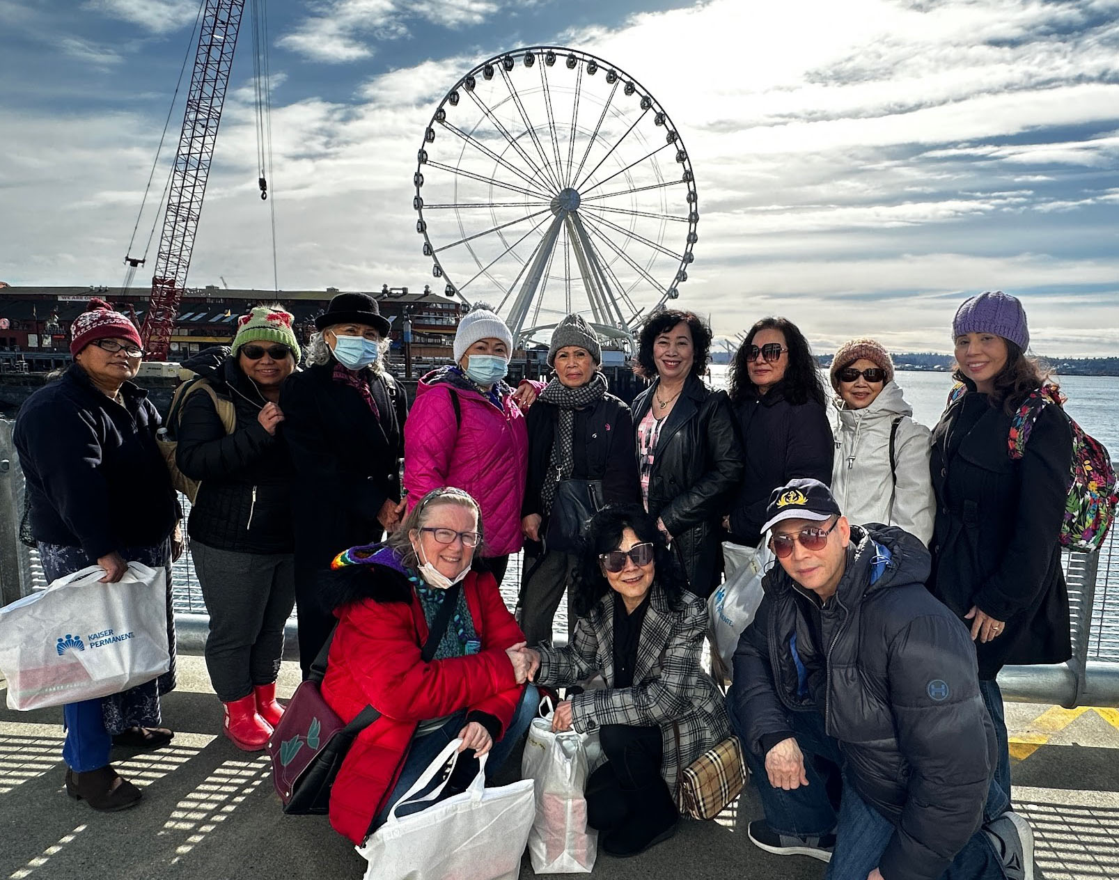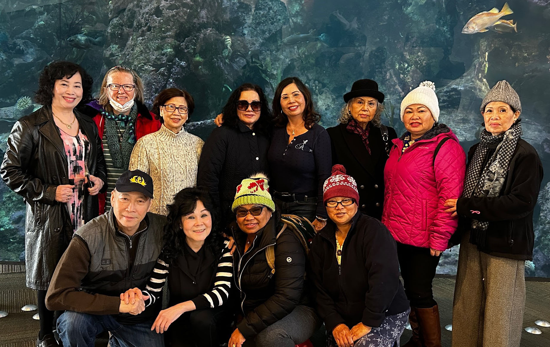We did a final round to look at our favorite exhibits and animals after lunch. I spent some time with Seniors watching the otters and sea lions. Some of the names these creatures have been given by the Aquarium are the cutest; the sea lions were named Barney, Hogan, and Greg! As we gathered to leave we took lots of group photos both inside the Aquarium and some outside with the great Ferris wheel just behind us. A beautiful, yet chilly, day that was filled with fun, friendships, and learning!